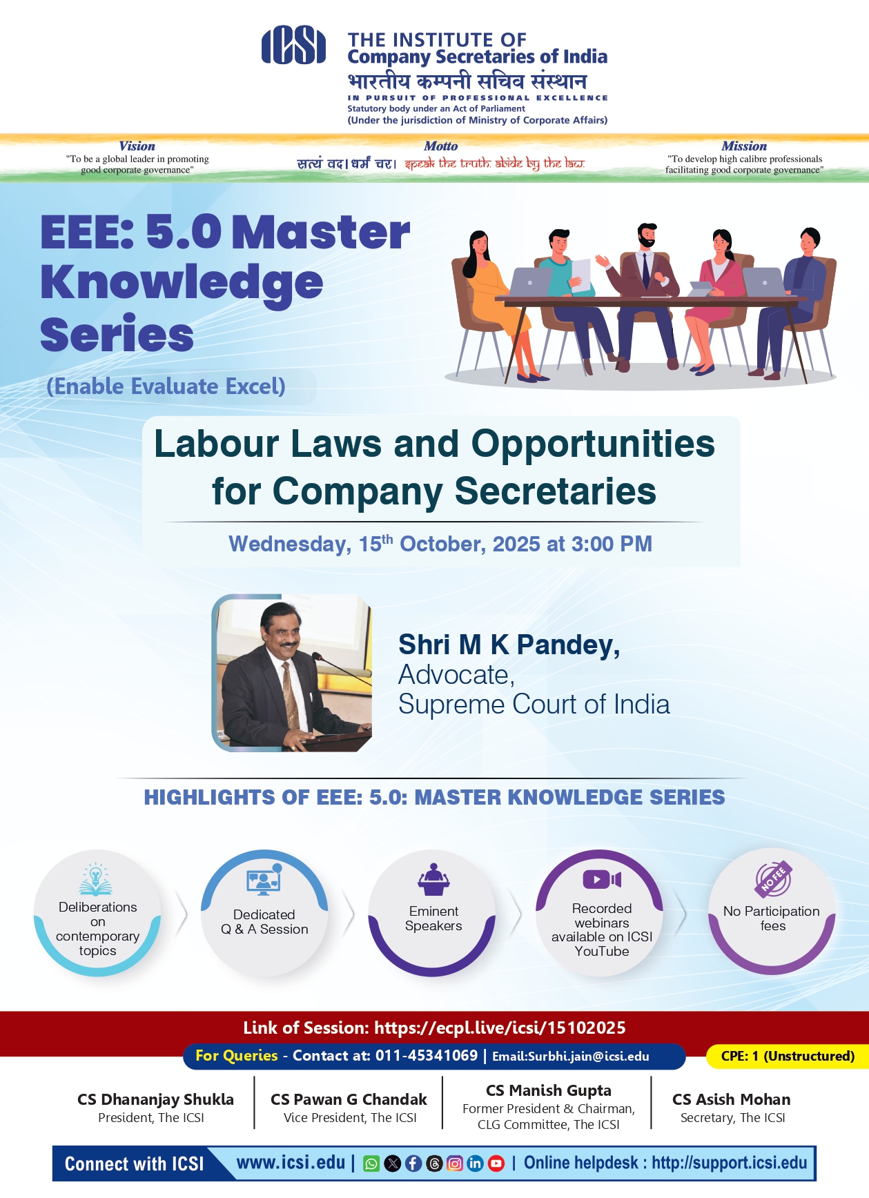 Live Webinar on Labour Laws and Opportunities for Company Secretaries