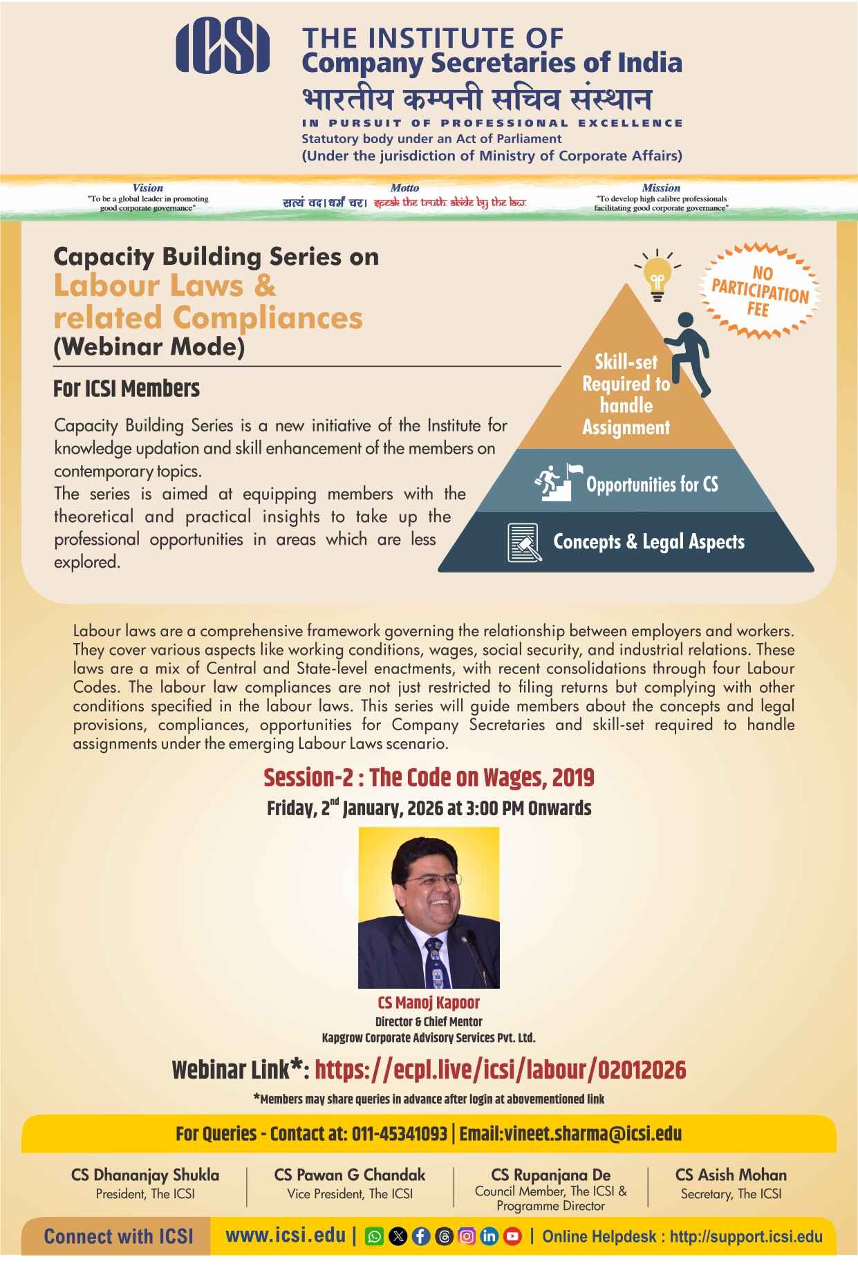 Live Webinar on Second Session of Capacity Building Series on Labour Laws and related Compliances